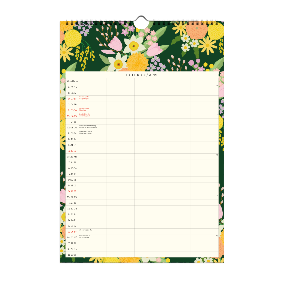 The calendar has space for the entries of five people. Languages: Finnish and Swedish. Size 23 x 34 cm. Made in Estonia.